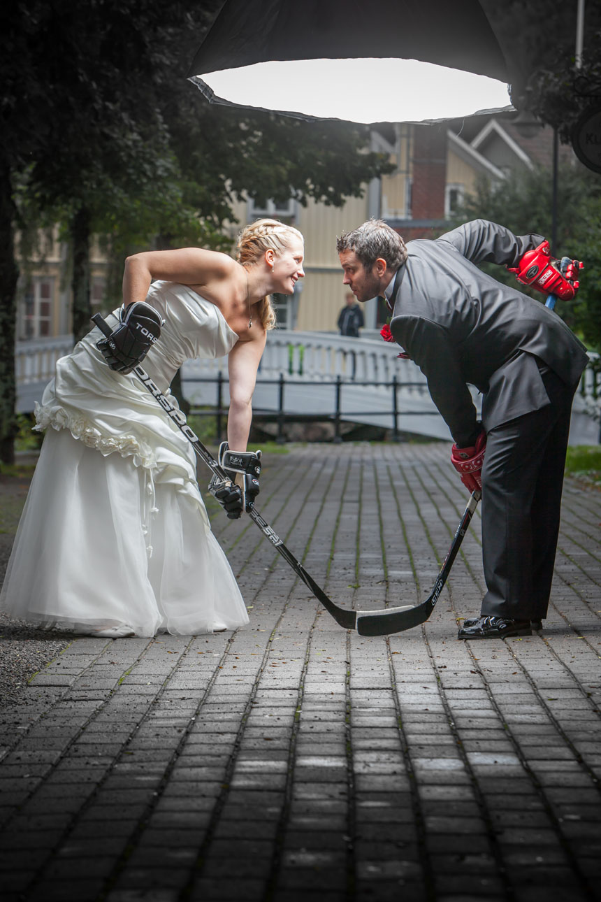 Övrigt:Paret Ekström valde att gifta sig 1 september 2012 i Norrtälje, jag hade turen att få dela denna dag och föreviga den på bild. Ishockey var en gemensam nämnare och något dom ville göra något kul med på bild. Tyvärr så regnade det hela dagen men blixtar med guldparaply gjorde susen, för visst ser det ut som solen lyser på sina ställen =)